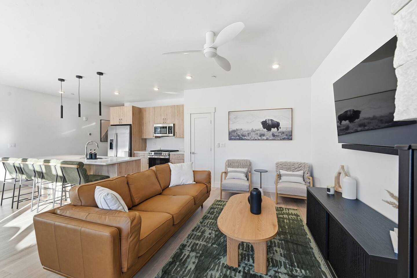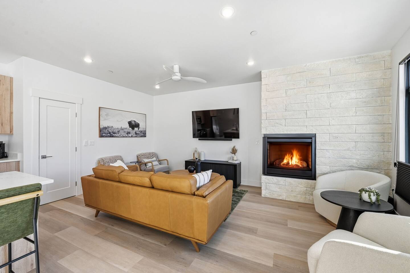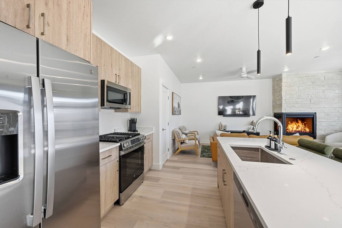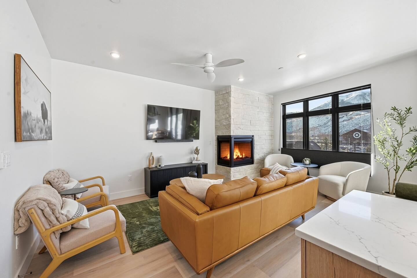 Guests will have full private access to the entire top-floor condo, including both bedrooms, two full bathrooms, the fully equipped kitchen, open living area with fireplace, and the private mountain-view deck. One exception is a locked owners closet in the hall for housekeeping and supplies. Enjoy easy self check-in with a smart lock — no waiting or meeting required. Free on-site assigned parking is available directly in front of the building, making arrival and departure seamless. Guests also have access to scenic walking paths nearby, and quick access to trails, ski resorts, and local shops. Everything you need for a relaxing and luxurious mountain getaway is right at your fingertips.