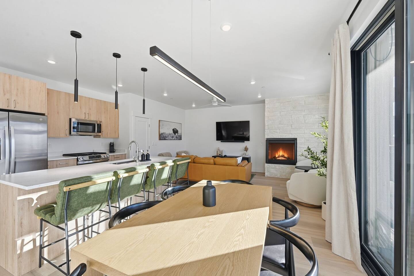 Experience refined mountain living in the heart of Summit County. This top-floor 2-bedroom, 2-bath luxury condo combines upscale design with panoramic views of the Rockies — the perfect blend of elegance, comfort, and adventure. ✨ The Space Step inside your modern alpine sanctuary featuring high-end finishes and large windows framing the mountains. Relax by the stone fireplace, stream your favorite shows on the smart TVs, or enjoy a glass of wine on your private deck overlooking the peaks. The chef’s kitchen includes stainless steel appliances, quartz countertops, and all essentials for dining in style. Bedrooms: Primary Suite: King bed, smart TV, ceiling fan, blackout shades, spa-style ensuite, workspace, and walk-in closet with drawers and luggage rack. Second Bedroom: Queen bed, smart TV, closet with drawers and luggage rack, and easy access to the second full bathroom. 🌄 The Experience Wake up to crisp mountain air and sweeping views. Spend your day skiing world-class slopes at Keystone, Breckenridge, or Copper Mountain — all just minutes away. In summer, hike nearby trails, explore Dillon Reservoir, or stroll the Blue River. After a day of adventure, return to the comfort of your luxury condo. Watch the sunset over the Rockies, unwind by the fire, and experience true Colorado tranquility. 💎 Amenities Private mountain-view deck Fireplace & open living space Fully equipped kitchen w/ stainless steel appliances and Keurig with coffee pods Smart TVs in every room High-speed WiFi & in-unit laundry with iron Free assigned parking Access to Summit County’s top ski resorts & outdoor recreation 📍 Location Nestled in Silverthorne, Colorado, this condo offers the perfect base for exploring Summit County. You’re close to restaurants, shops, and local breweries — plus just a short drive to Keystone, Breckenridge, Vail and Dillon. 🌟 Why Guests Love It Guests rave about the clean, modern feel, incredible mountain views, and central yet peaceful location. Whether you’re here for skiing, hiking, or relaxing in style, this condo delivers a five-star mountain experience. 🏡 Your Luxury Colorado Getaway Awaits Book your stay today and experience Silverthorne from a place that blends modern elegance, comfort, and mountain adventure — your perfect alpine escape awaits. STR No: ATBDGID92F